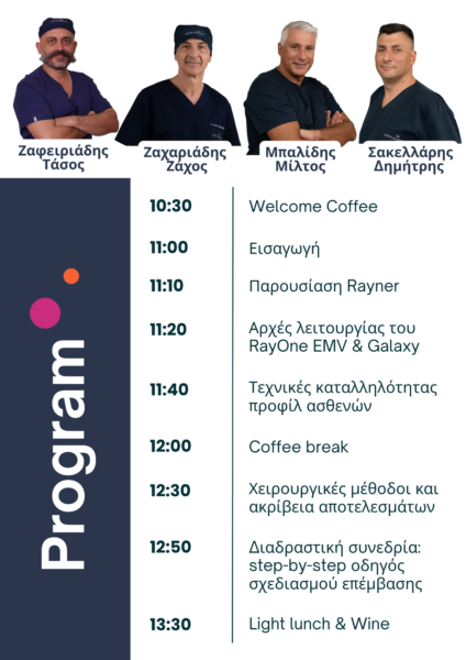 Σε ένα «κλειστό» Masterclass, θα έχουμε την ευκαιρία, μαζί με τους συνεργάτες μας, να εμβαθύνουμε στις αρχές και τις σύγχρονες εφαρμογές των RayOne EMV και RayOne Galaxy, μέσα από μια προσέγγιση θεωρητικής κατάρτισης και ανάλυση πραγματικών κλινικών περιστατικών