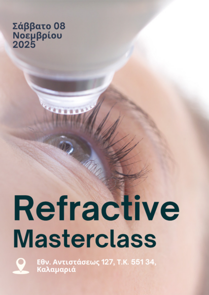 Το Ινστιτούτο Οφθαλμολογίας & Μικροχειρουργικής Ophthalmica, έχοντας ανακοινώσει την εκκίνηση μιας σειράς από Advisory Round Tables, σας προσκαλεί στο 2o Refractive Masterclass το Σάββατο 08 Νοεμβρίου 2025 και ώρα έναρξης 10:30, στις εγκαταστάσεις μας, Εθν. Αντιστάσεως 127, Τ.Κ. 551 34, Καλαμαριά.