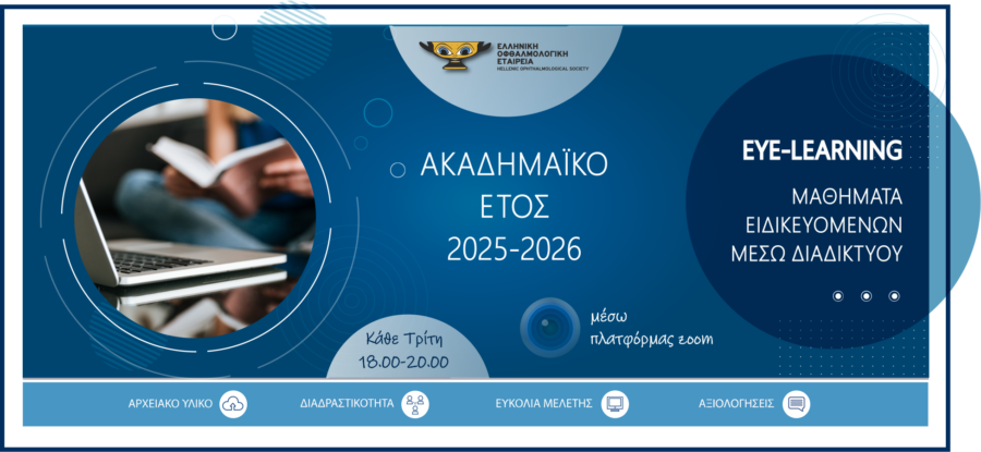 Ο οφθαλμίατρος χειρουργός Λοκοβίτης Ευάγγελος MD, FEBOphth, Ειδικός στη Χειρουργική Βλεφάρων, Δακρυϊκής συσκευής & Κόγχου και μέλος του Ινστιτούτου Ophthalmica, συμμετέχει ως ομιλητής στα Μαθήματα Ειδικευομένων της Ελληνικής Οφθαλμολογικής Εταιρείας για το ακαδημαϊκό έτος 2025-2026, στο πλαίσιο της θεματικής ενότητας: Κόγχος – Βλέφαρα – Δακρυϊκή Συσκευή